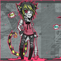 "Zatracené děcka! Pořád to budou dělat..." cukl jsem při tom naštvaném hlasu. Když jsem se po něm otočil, uviděl jsem Cata. Byl asi tak o hlavu menší jak já. Měl černé vlasy, které přecházely ve světle modrou u konečků. Tak samo to bylo s jeho ušima. U hlavy černé, ale jejich špičky modré, i ocásek. Hmmm.... Zajimavé... Ale neudržel jsem se a začal se smát. Měl totiž všude ve vlasech listí, v košili měl zapíchané větvičky a celý vypadal, jako by ho vyplivl nějákej lesní bůh. Když se naše pohledy setkaly, zjistil jsem, že i oči má modré... Jako nebe...