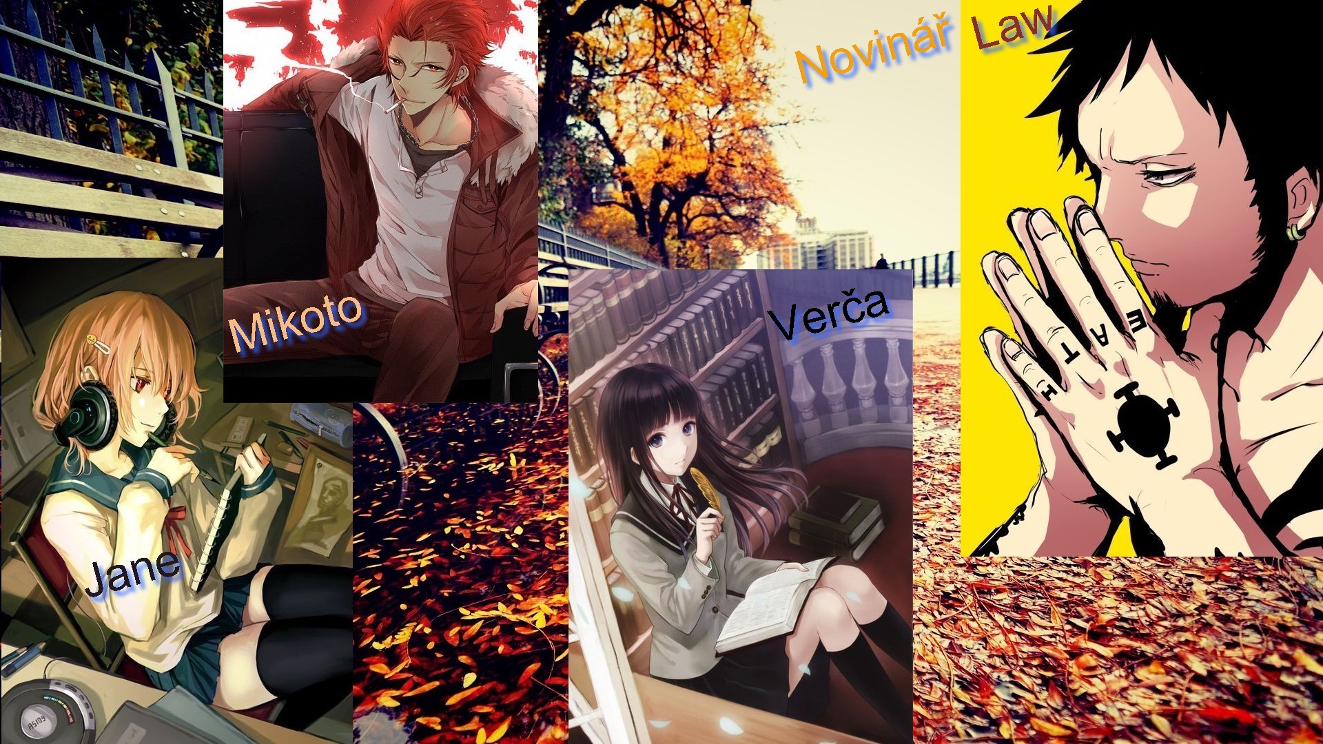 ,,Zdravím bando, doufám, že budeme spolupracovat. Jmenuju se Law Trafalgar. A jsem tu kvůli článkům o gangech. Těší mě." řekl s ironii v hlase Law. Jakmile zmínil gang, hrklo to ve mně. Ale nedala jsem nic znát. Tvářila jsem se stále stejně. Výhoda, že dokážu skrývat své pravé city i pocity. Poté jsme se panu novináři představili i my. Poté nás profesor pro dnešní den rozpustil.